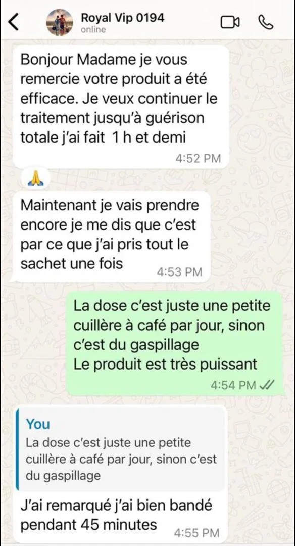 PRIX : 10.000FCFA pour 03 sachets et 18.000FCFA pour 06 sachets (Livraison Ă vos frais)